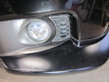 フォグランプ脇のハニカムデザインのパネルに穴を開け・・